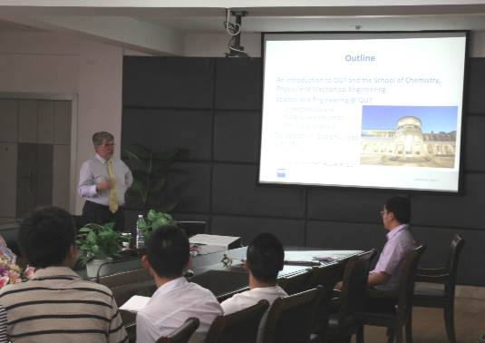 2015年5月28日,澳大利亚昆士兰科技大学化学、物理与机械工程学院院长John Bell教授来我院访问,并为我院师生做了一场题为“Education and Research in the School of Chemistry, Physics and Mechanical Engineering at QUT”的学术报告。