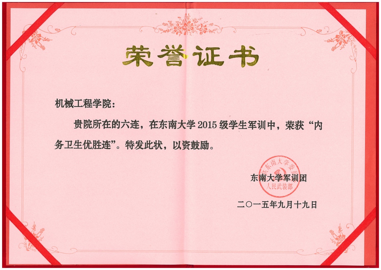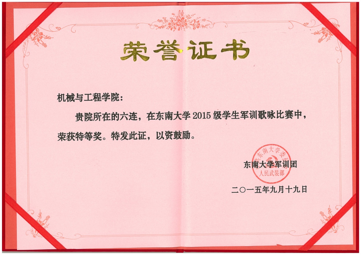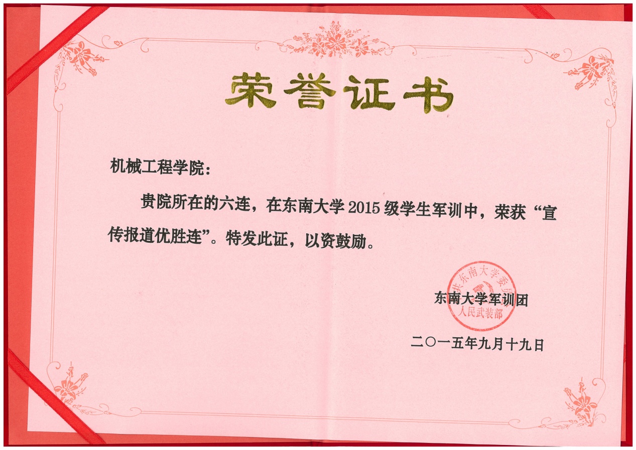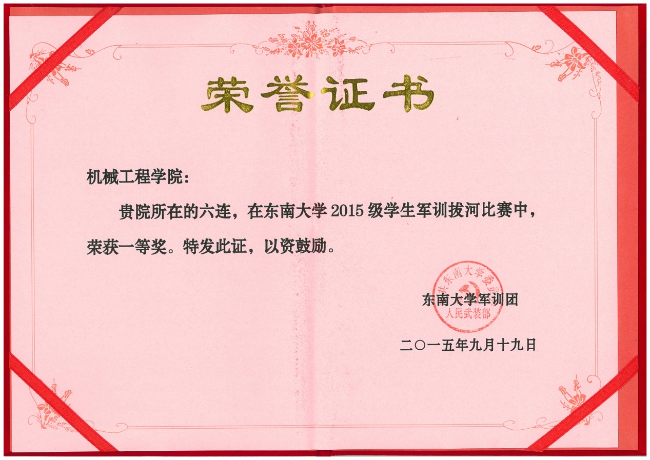 由机械工程学院与能源与环境学院组成的六连在此次军训中无疑成为一匹黑马脱颖而出,表现令人瞠目!从军事训练到文体活动再到内务卫生,六连的同学们都不甘示弱。在表彰之时,六连的名字一次又一次响起。六连赢得了“大满贯”——囊括了几乎所有的“第一”,他们以自己的实力,赢得了优胜连队,军事训练优胜连,宣传报道优胜连,文体活动优胜连,内务卫生优胜连。在各种比赛中,六连斩获拔河、合唱双项冠军,定向越野三等奖的成绩。辅导员梅仂盈、王瑜祥荣获优秀指导员称号。吴荣承等52名同学获得优秀学员。宋景晖,陶丰两位摄像师所拍摄的精美照片斩获四项大奖,三名同学赢得了征文比赛的奖项。