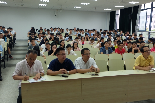 接着倪院长对新生提了四点要求:一、保持青春的热情,不要过早考虑外部因素,大胆发挥科研的创新精神;二、以主人公的精神对学院多一点关注,多提建议;三、多一些情怀,理解传承、学会分享、懂得感恩;四、多一点科研工匠精神,少一点抱怨,静下心来做自己的工作。