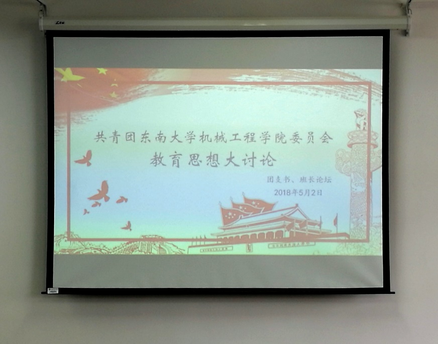 共青团万象城平台委员会组织开展的“教育思想大讨论”暨团支书、班长研讨会于2018年5月2日在机械楼第一会议室举行。本次研讨的主题是:观摩国旗团支部答辩后对于所在基层组织建设的相关思考和讨论。