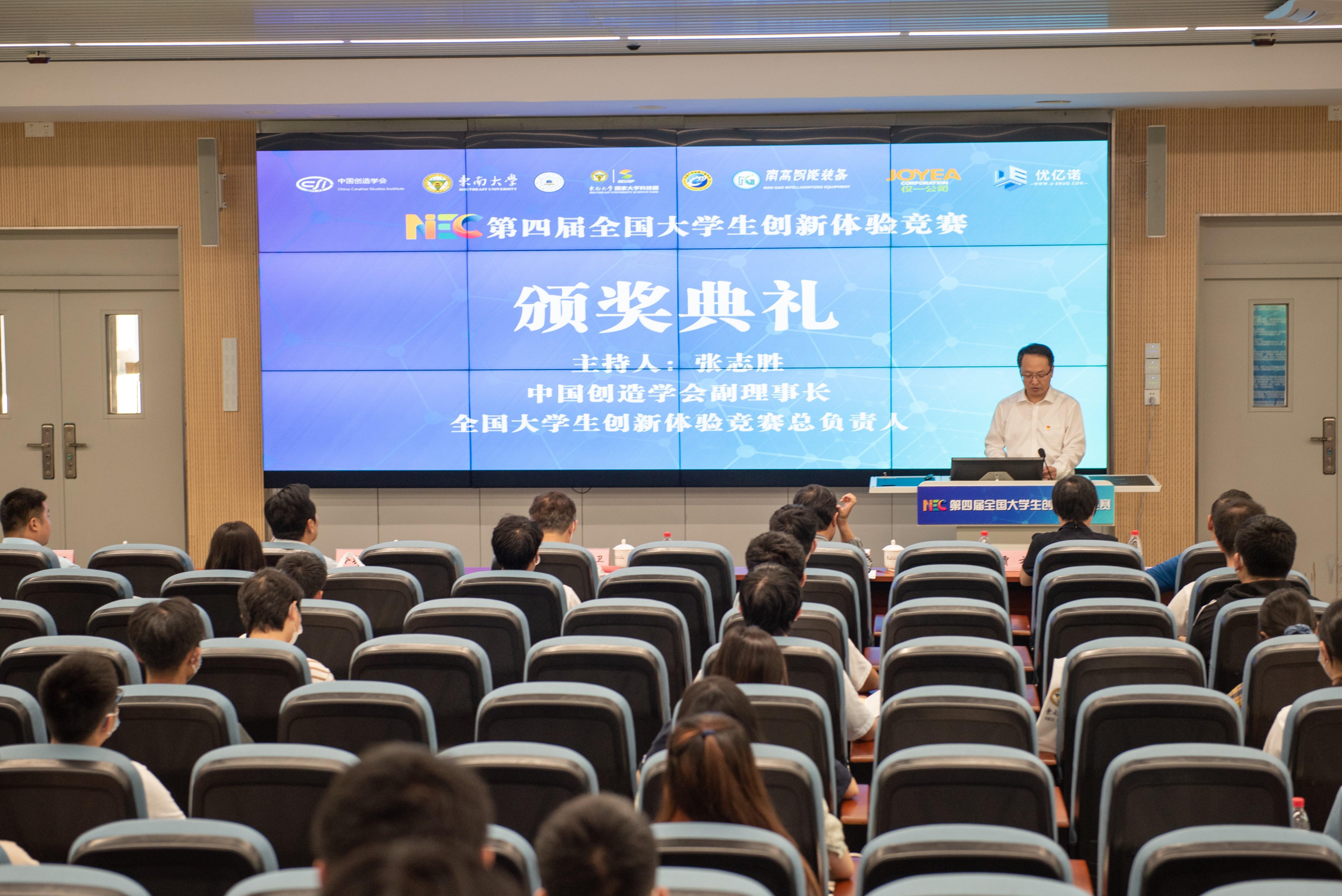 6月6日,第四届全国大学生创新体验竞赛颁奖典礼在东南大学九龙湖校区举行。本次竞赛由中国创造学会主办,东南大学和安徽工业大学联合承办,东南大学国家大学科技园、安徽工业大学创新教育学院、万象城平台组织实施。中国创造学会常务副理事长张亚雷、东南大学党委副校长黄大卫、澳门中西文化创意产业促进会理事长李嘉曾出席并致辞,来自东南大学、安徽工业大学、中国创造学会、竞赛组委会及支持单位的代表以及部分参赛师生等参加了典礼。典礼由万象城平台党委书记张志胜主持。