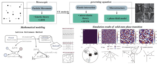 近年来,基于动理学理论(Kinetic Theory)的格子玻尔兹曼方法(Lattice Boltzmann Method)在精确模拟从微观粒子相互作用到宏观行为的复杂物理过程中发挥着至关重要的作用,成为跨尺度模拟复杂物理过程的重要工具,已在粒子输运、动力学行为及相互作用等领域得到广泛应用,并在相变和多相流模拟中展现出巨大潜力。然而,其在固-固相变领域的研究仍相对较少。