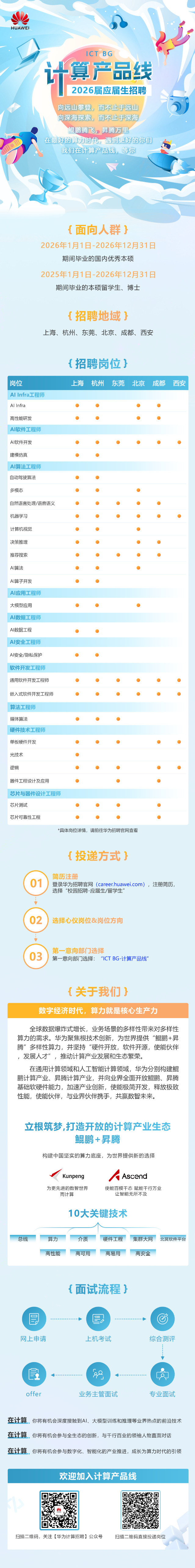 招聘 | 华为计算产品线2026届应届生招聘启动