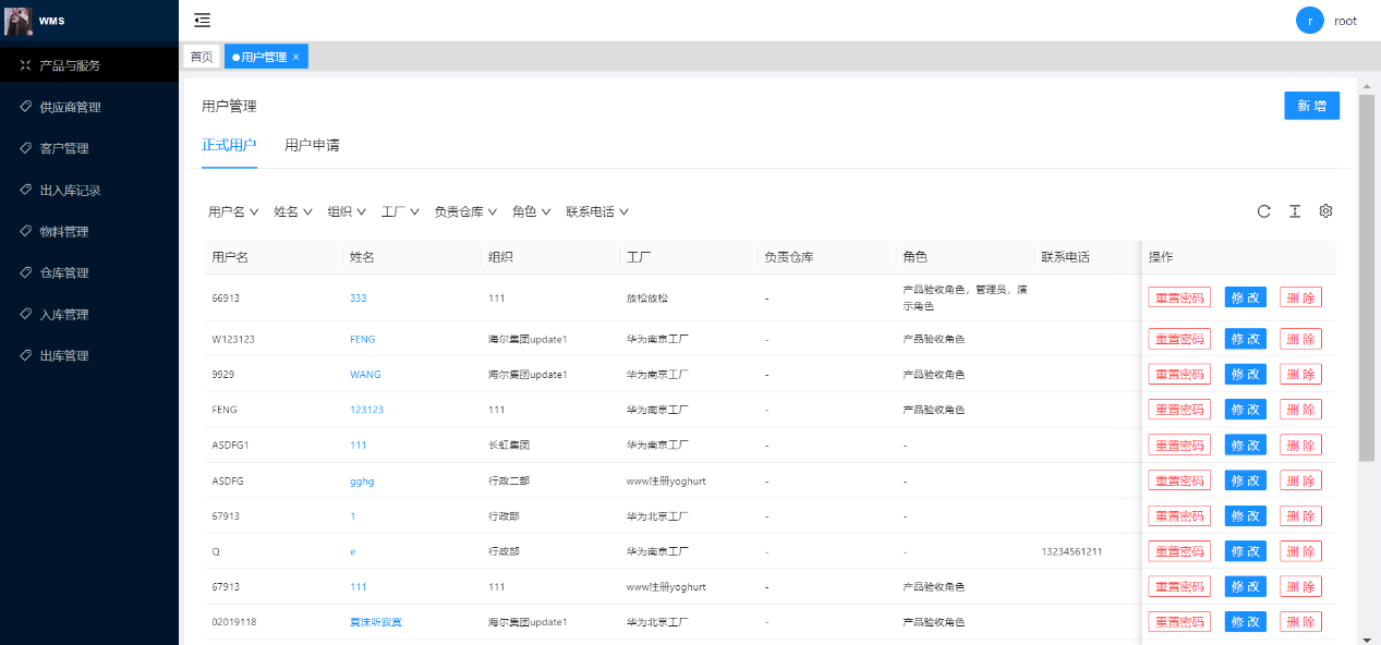 功能性测试。进入wms系统的web页面进行功能性测试,每人负责一定的范围,依照测试用例的顺序测试系统功能,记录出现的漏洞或与需求规格说明书不相符之处。