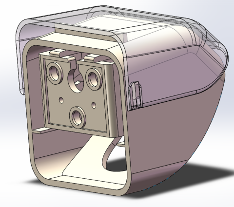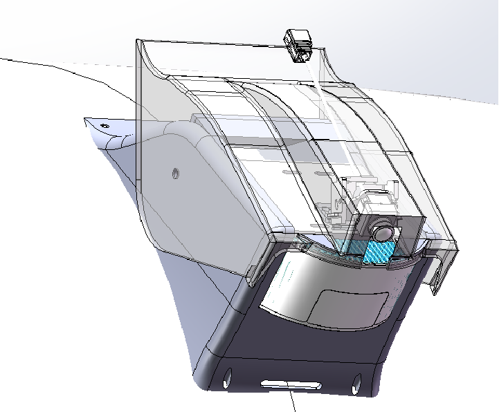 本项目负责对无人驾驶汽车雷达、摄像头结构优化设计。1)无人驾驶汽车雷达支架疏水结构优化设计;2无人驾驶摄像头与雷达支架一体化设计;3)车辆侧摄像头防漏水方案设计。本小组完成了优化结构的设计和三维建模。