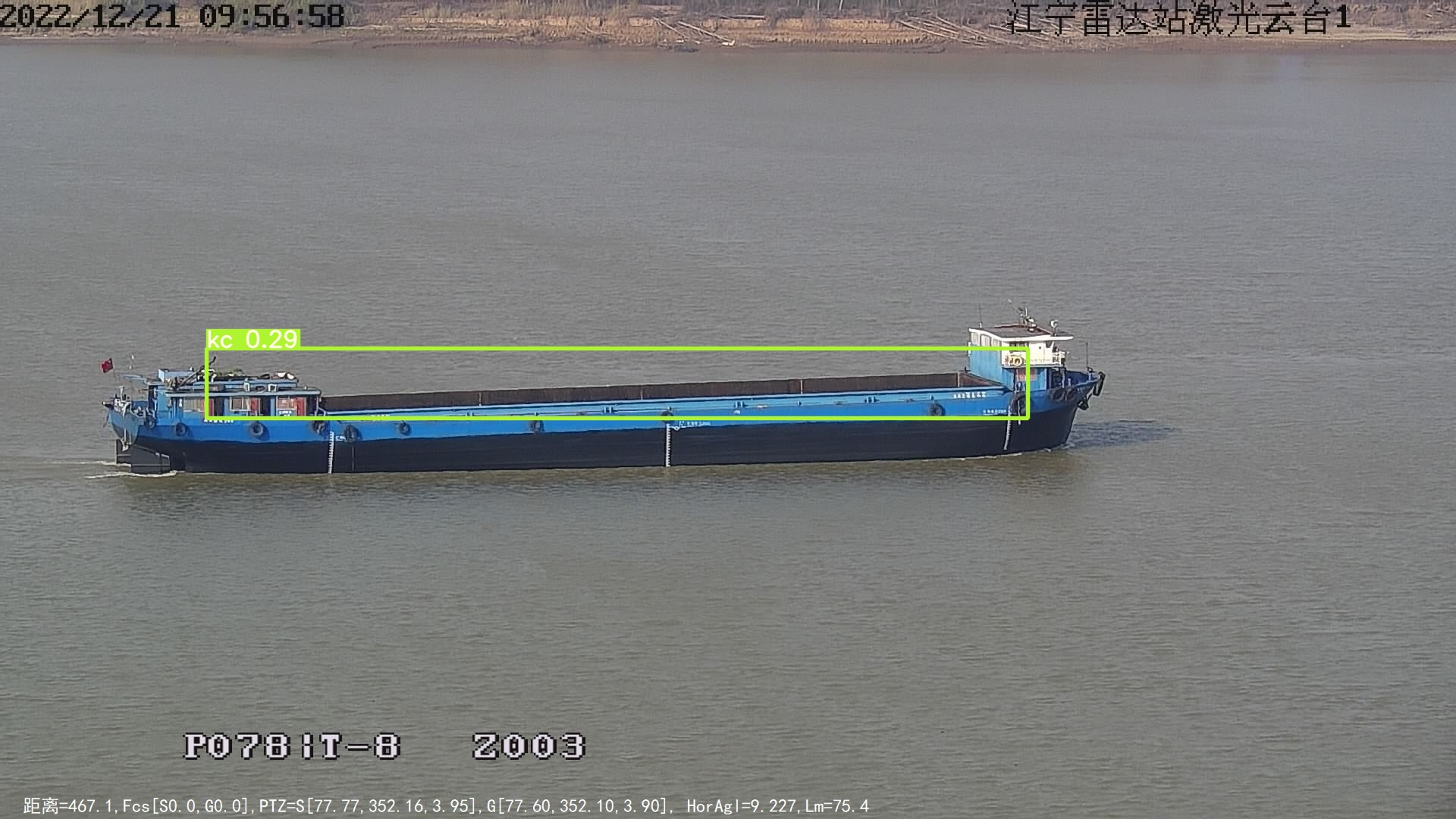 通过对数据库中两千余张图片进行标记,使用yolov5进行图像识别训练,将训练得到的权重文件导入detect图像检测程序中,分别从数据库和网络上寻找不在训练集中的图片进行验证,船舶封仓识别结果基本准确。
